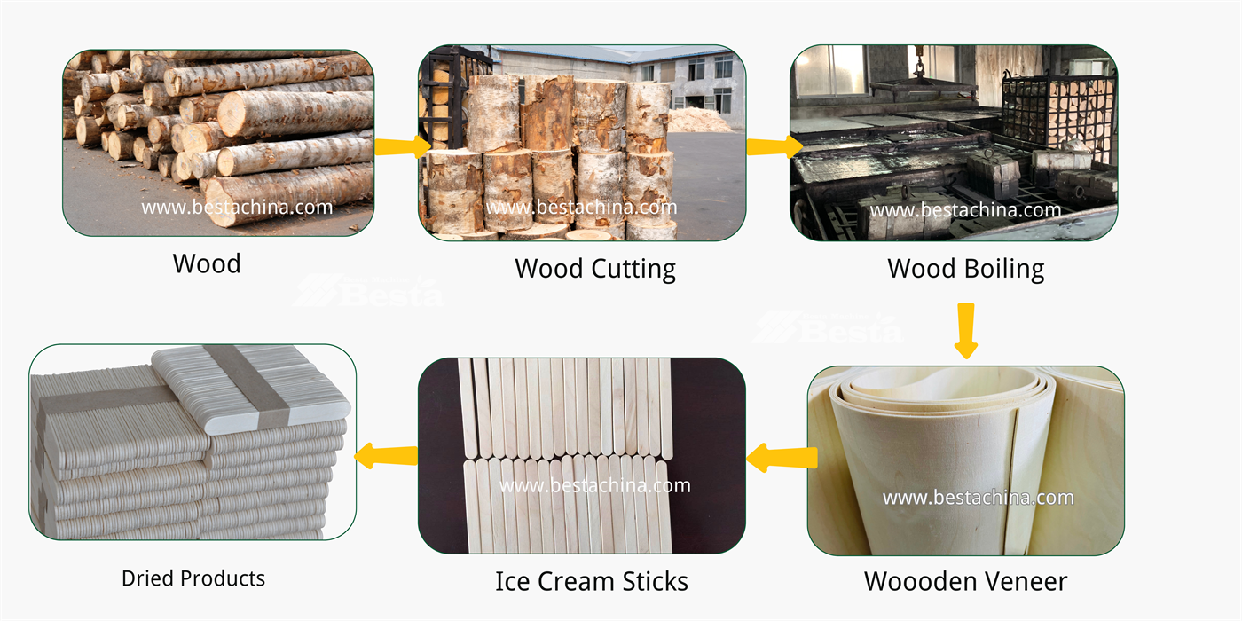 The product after punching is wet and with certain moisutre. You need the following machine to make the "wooden ice cream sticks" to be dried.