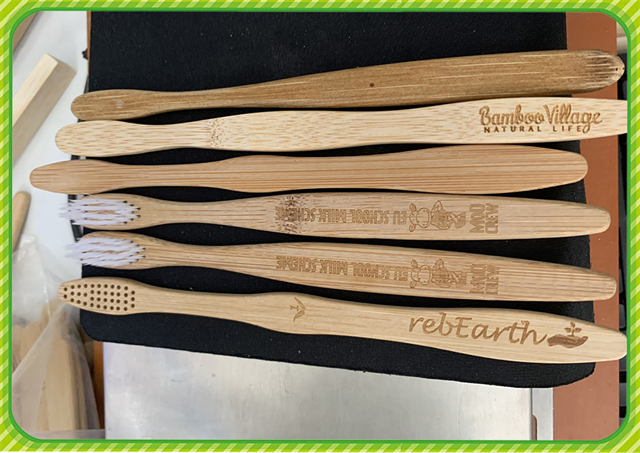 Laser logo branding of bamboo toothbrush