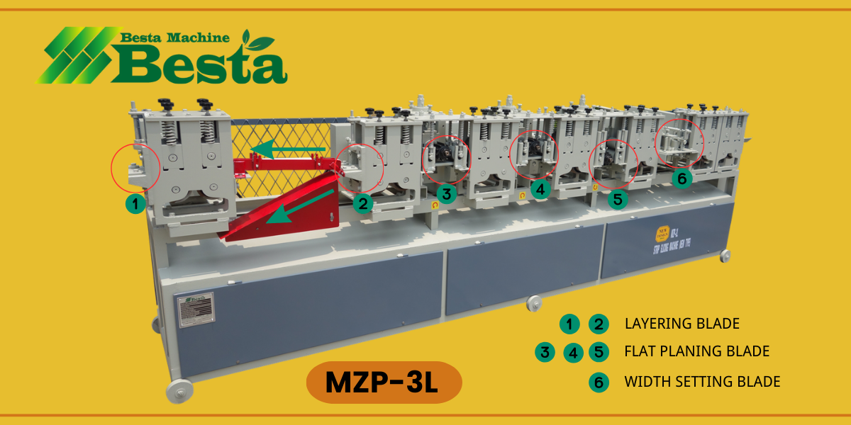 MZP-3L Bamboo Strip Slicing Machine,has width setting blade,1 pc of down flat planing blade,2 pcs of upper flat planing blade,2pcs of layering blades.