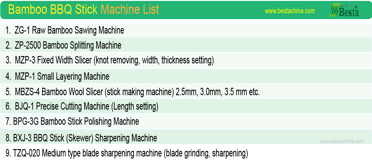 Bamboo BBQ Stick (Skewer ) Making Machine is consisted by the following machines,