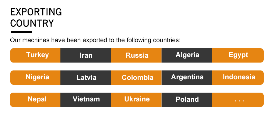 We used to send our machine engineers to many countries ex. Nigeria, India, Indonesia, Thailand, Myanmar, Cameroon,