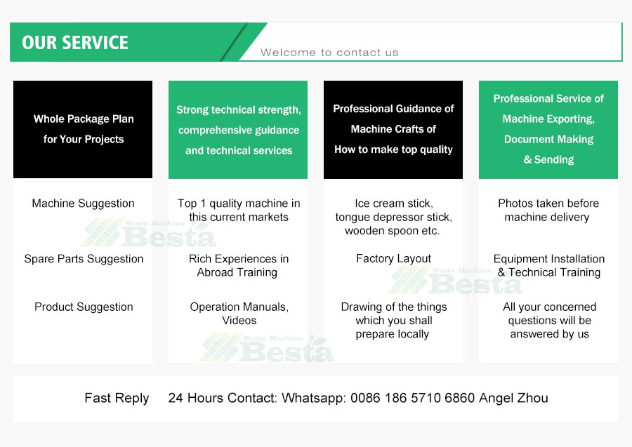 We have a strong R&D team. We not only produce ice cream stick equipment, but also produce products. We have a large ice cream stick, ice spoon processing factory,with many years of experience in the production of ice cream stick products. We are constantly improving our machines in our own devices. Throughout the industry, BESTA MACHINE is the company with the strongest technical capabilities, innovative and quality services.