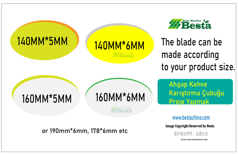 Carved Cutting Blade -140mm or 160mm type, it is used in our machine model CCM-003S CARVED CUTING MACHINE (OR CCM-003C) MODEL. It is used for shape forming wooden veneer into wooden coffee stirring sticks.