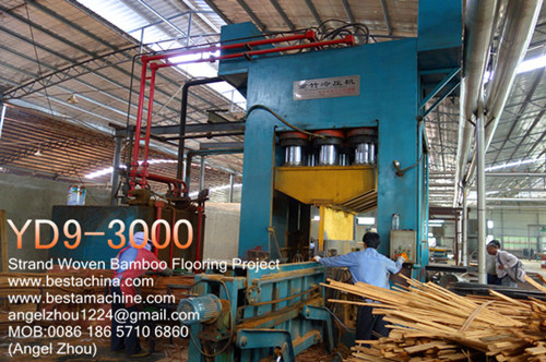 | Application | strand woven beam making, strand woven bamboo furniture board making, strand woven flooring making.After using YD9-3000, the bamboo strip (with glue and dried)will be pressed into one strand woven beam block ex. 1920*140*143MM. with high density. |